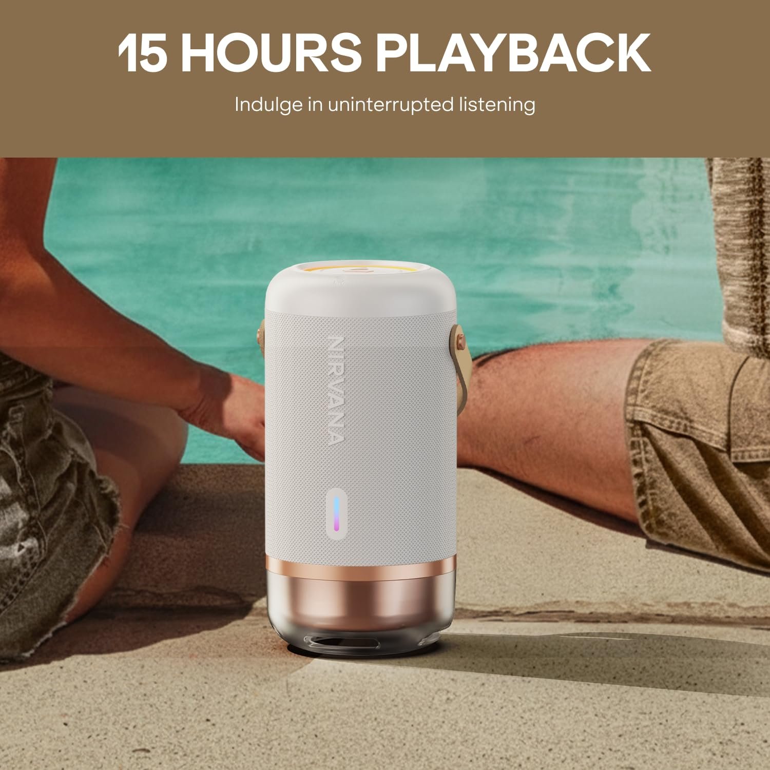 Boat 2026 Launch Nirvana Luxe,360- Surround, Spatial Audio, 100W, 15hrs Battery, Broadcast, App Support, NFC Pairing (Android), Bluetooth Speaker, Wireless Speaker, Portable Speaker (Ivory White)