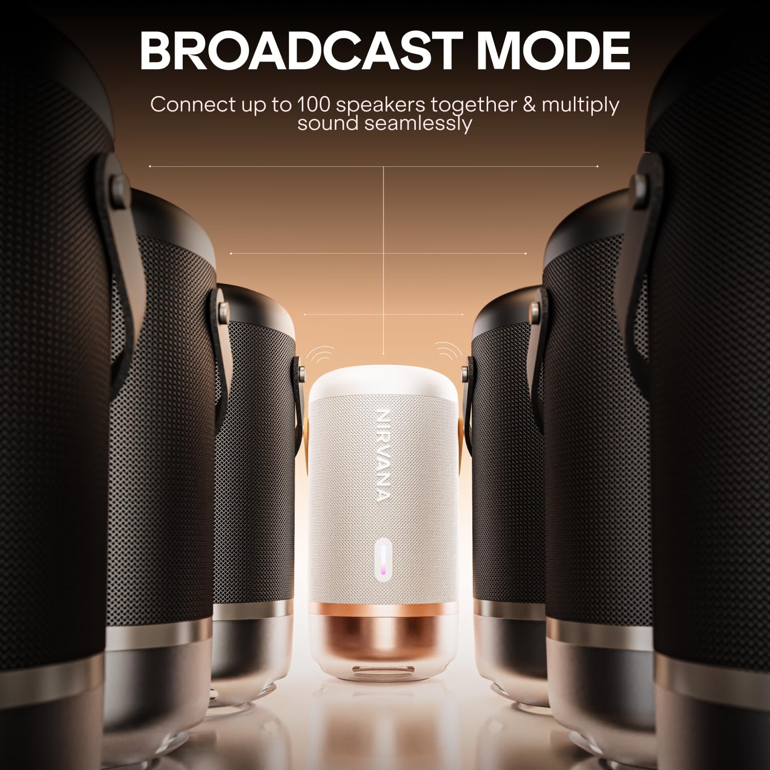 • Broadcast the Sound: Turn up the energy with Broadcast Mode. Wirelessly connect multiple Nirvana Luxe speakers to create expansive, room-filling sound for house parties, movie nights, or group hangouts.