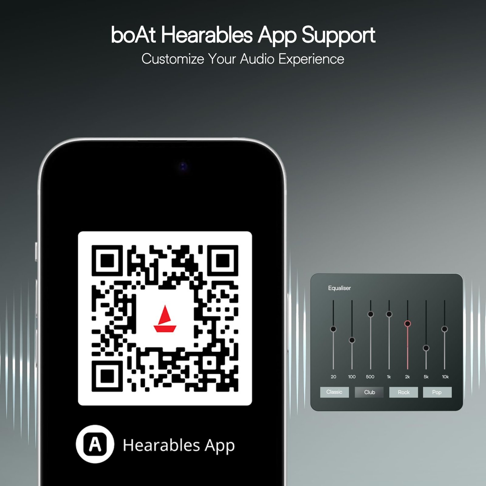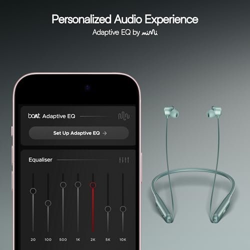 - boAt Adaptive EQ by Mimi: Delve into a customized listening experience with boAt Adaptive EQ by Mimi Technologies. Create your hearing profile on the boAt Hearables app and watch your preferred content with the audio adapted to your hearing.