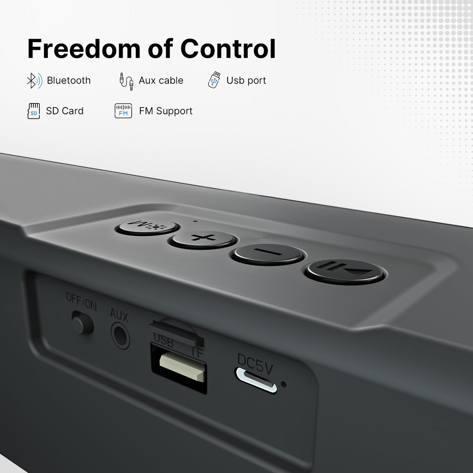 - Freedom of Control: Blaze comes with a multiform connectivity assembly to give you more options to connect and play what you wish – Bluetooth/Aux/USB/SD Card/FM Support