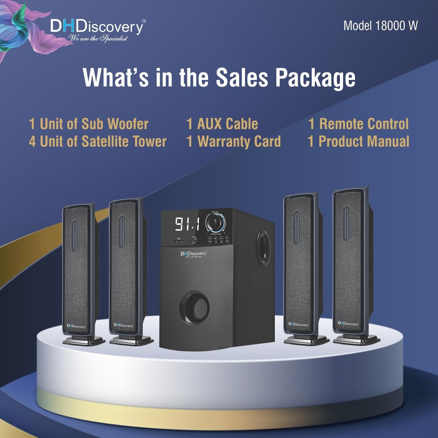 DH Discovery DH18000 250Watt 4.1 Home Theatre System | Multimedia Speakers |Bluetooth Speaker | with Bluetooth v5.0/1 USB Slot/1 AUX/Built in FM Radio/LED Display with Remote Control (Black)