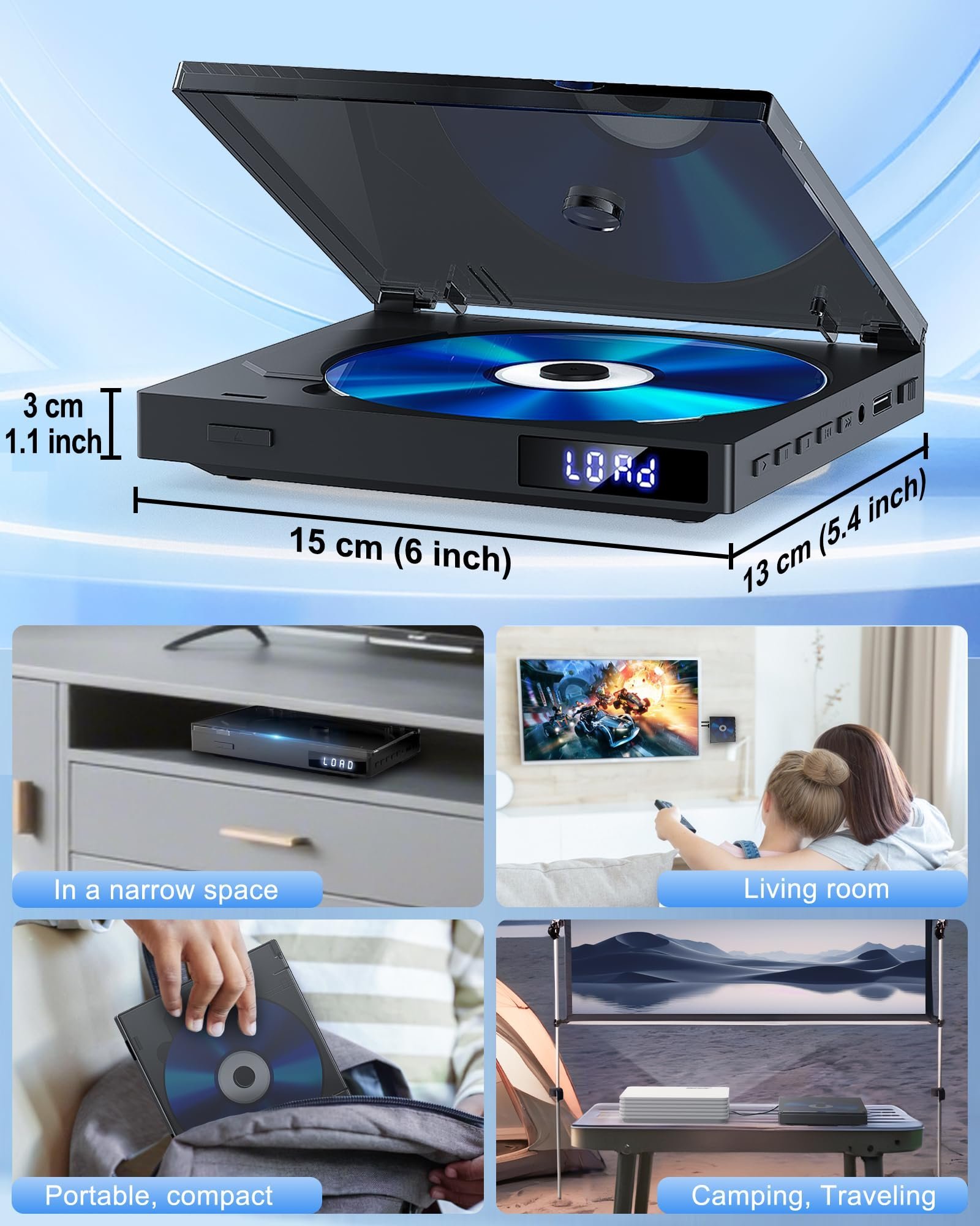 - [COMPACT SPACE-SAVING DESIGN]: Unlike bulky traditional DVD players, this small DVD player is perfect for small spaces and easy to carry. The portable DVD player seamlessly combines modern design with practical functionality, making it an ideal choice for both home and personal use!