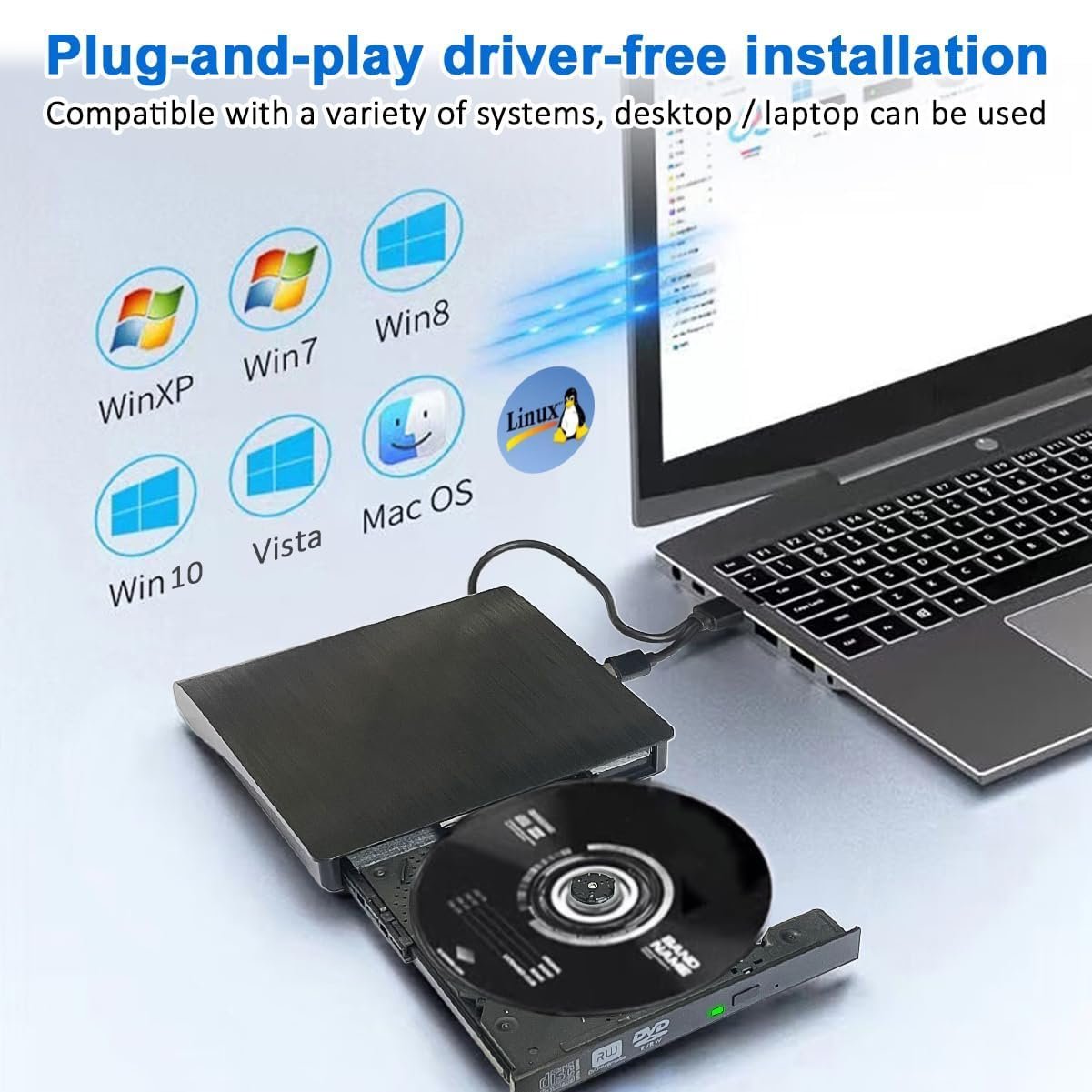 - 𝐂𝐨𝐦𝐩𝐚𝐭𝐢𝐛𝐥𝐞 𝐰𝐢𝐭𝐡 𝐚 𝐰𝐢𝐝𝐞 𝐫𝐚𝐧𝐠𝐞 𝐨𝐟 𝐝𝐞𝐯𝐢𝐜𝐞𝐬: Whether you are a Mac user or Windows user, this DVD player is perfect for you. Supports various operating systems such as Windows 2000/2003/7/8/8.1/10/11/XP, Vista, Linux. Just plug it into your PC with the included cable and it is ready to use. Supports various devices from Windows to Mac OS seamlessly (*Notice:If you can’t remove the DVD button (IN/OUT) after connecting the interface, you need to select [This PC] on you