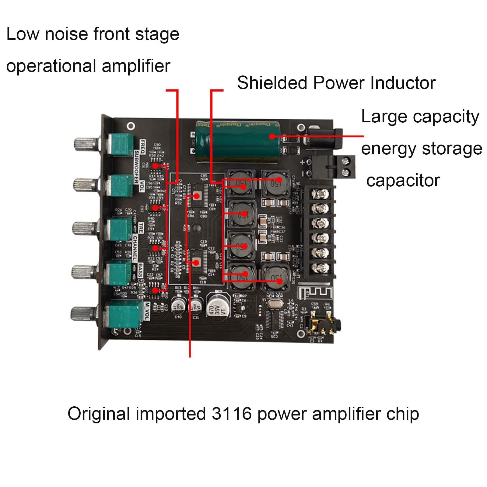 - 【High Fidelity HIFI Sound】Adopt imported TPA3116D2 chips, with excellent power amplifier effect. Distortion is less than 0.1% even at high output power. Modulation frequency up to 1.2MHZ built-in LC filter capacitor to make voices clearer.