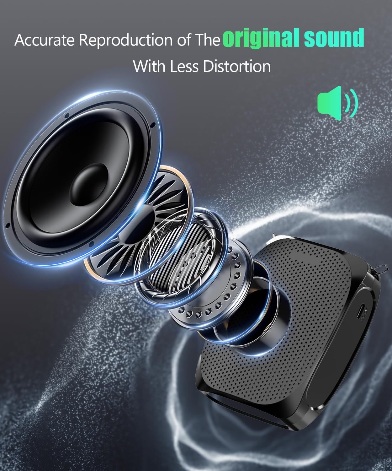 - [Powerful Sound] The voice amplifier is in compact size with a 10W crystal clear sound output loud enough to cover a room with a large group of 25-100 people