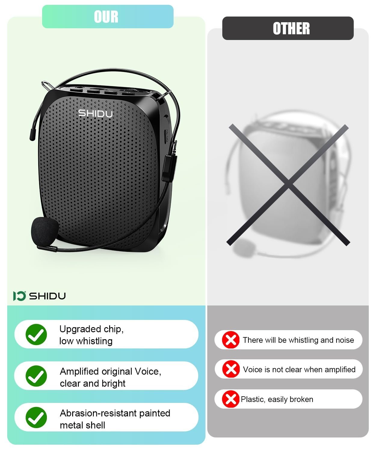 - [Multifunctional] The stable performance is perfect for amplifying your voice & saving your throat. You can use it not only as a voice amplifier but as a music player with TF card or USB pen drive