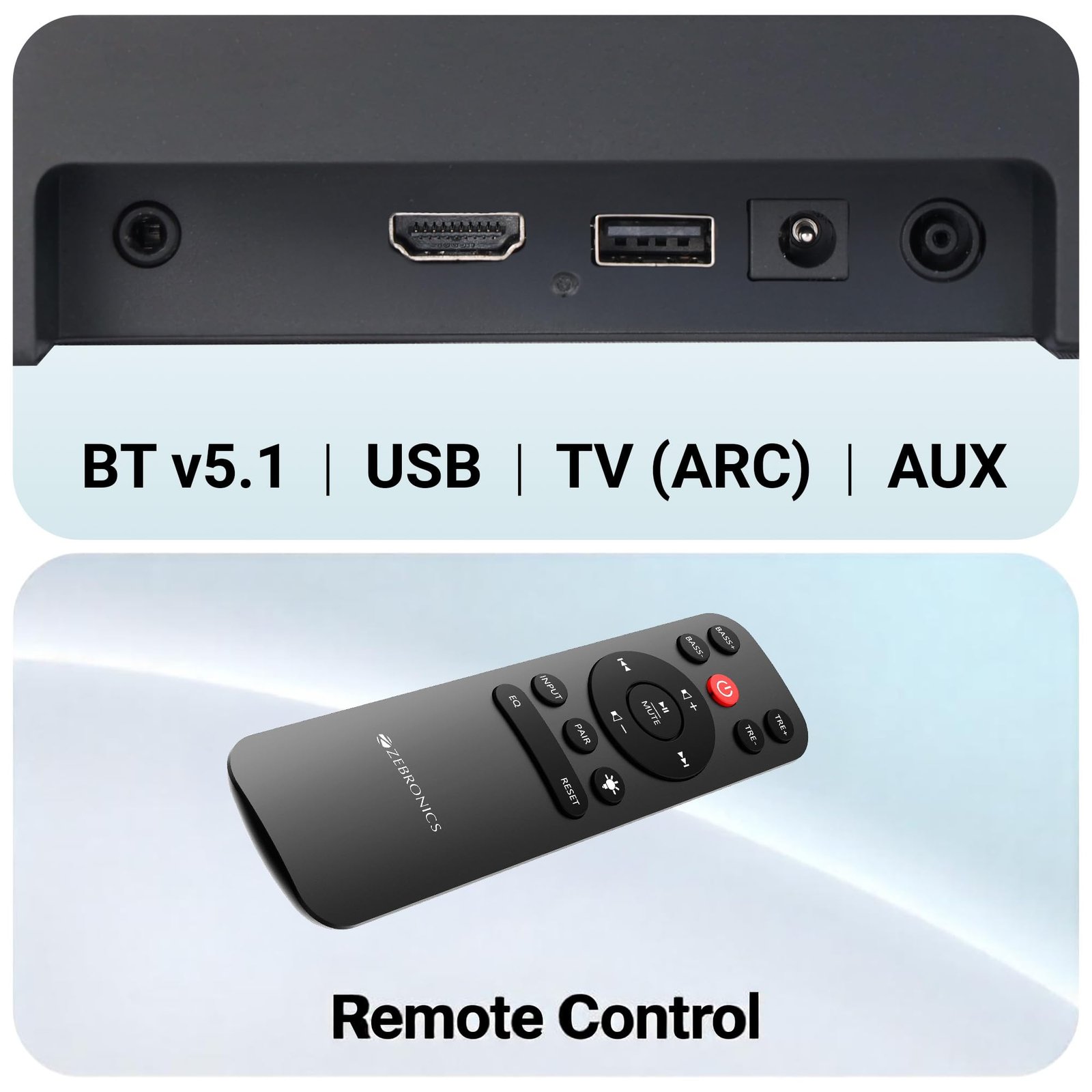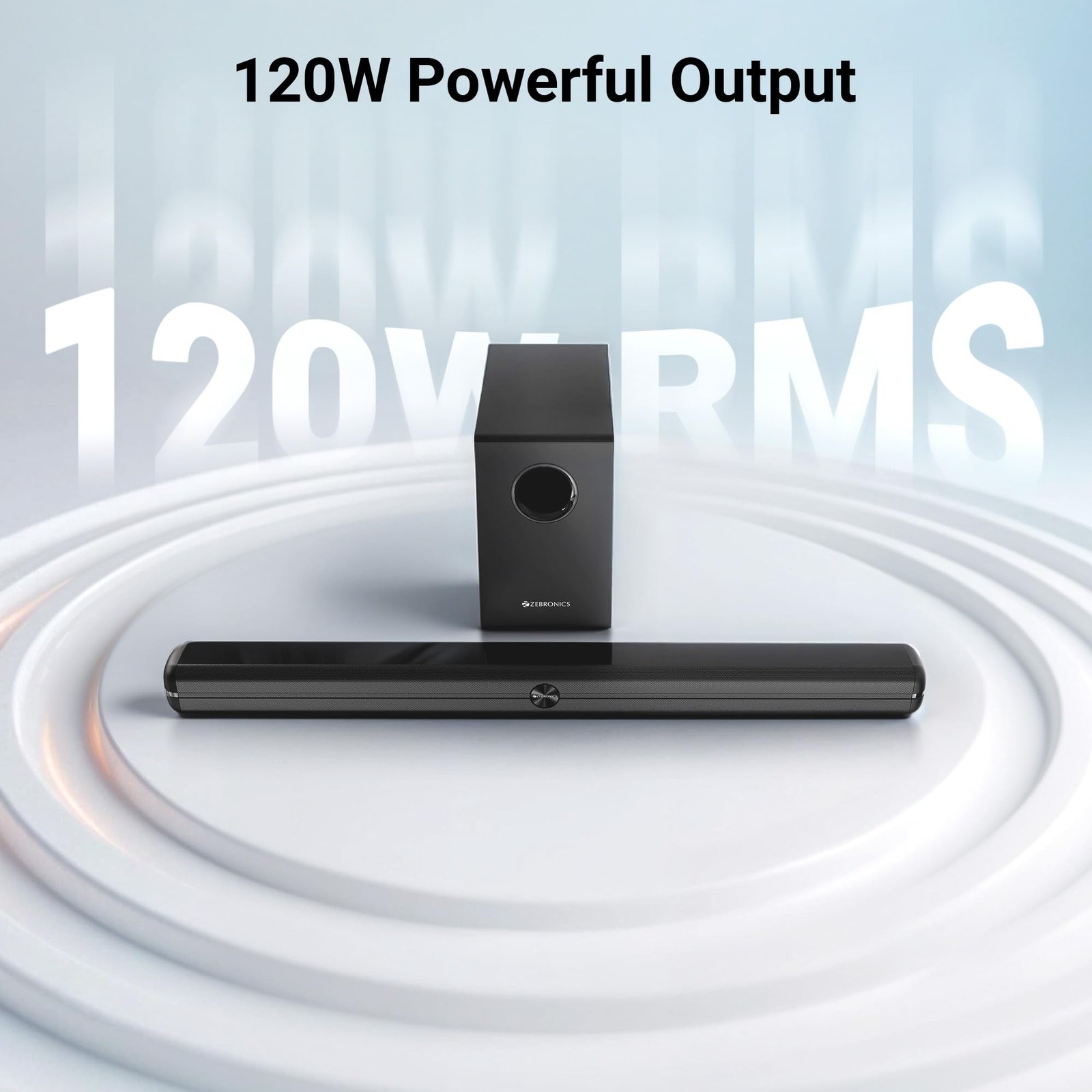 ZEBRONICS 120 Watts Soundbar, Home Theatre, Dual Racetrack Drivers Soundbar, 13.33cm Subwoofer, HDMI ARC, Bluetooth v5.1, USB, Glossy Finish, Wall Mountable, 2.1 Ch (Juke BAR 3910)