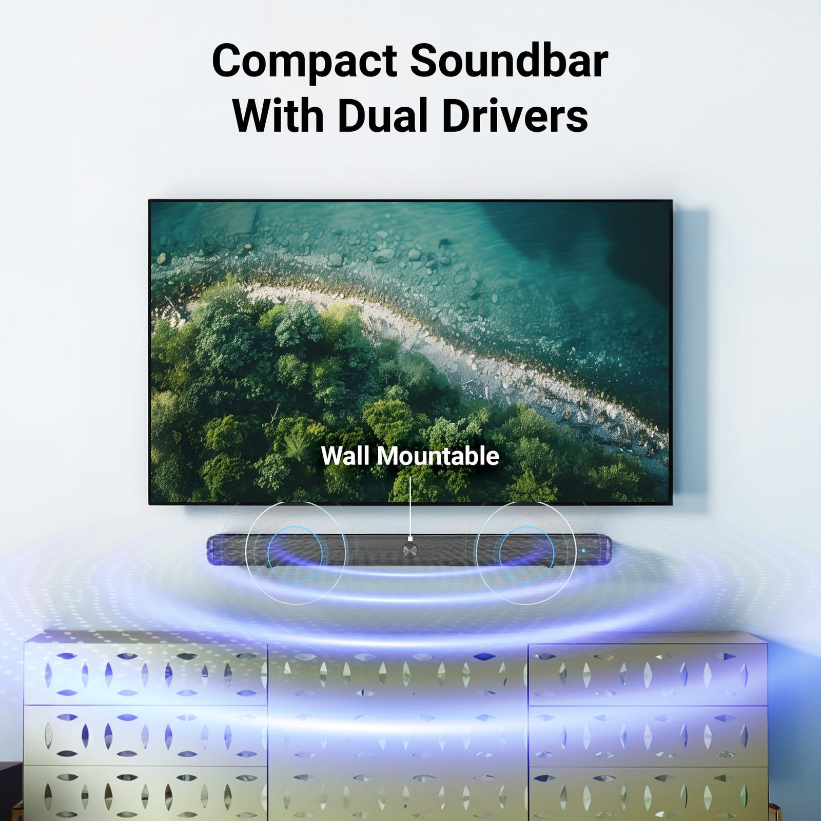 • GLOSSY OUTLOOK: Compact soundbar with a glossy finish that enhances the visual appeal of any space.